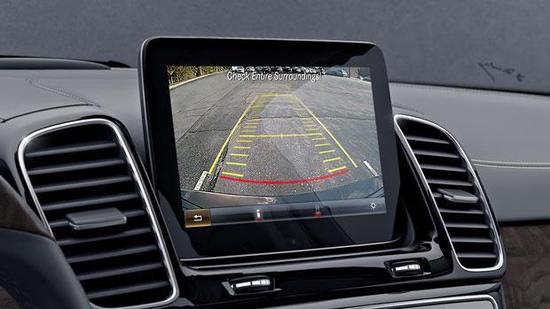 奔驰GLS 450的倒车影像显示了一个180度的实时视图,显示在仪表板上方的屏幕上的车辆背后的情况。当你转动方向盘时,屏幕上的指引显示出汽车的投影路径。