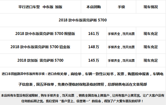 金属漆、凌志标照地镭射灯、21轮、遥控启动、脱钩、车身防擦条、流水式转向灯、138升双油箱、 SPORTPLUS标(运动加强版、底盘及发动机运动模式调校) 换挡拨片、冰箱、天窗、智能卡、电眼、环影、后娱、底盘升降、前座椅通风加热(真皮)、导航、倒影、桃木多功能方向盘、桃木内饰、铝制行李架、航空照明脚踏、LED 氙灯 大灯清洗、迎宾灯、四区空调、三排电动、电尾门、拖车钩、ACC自适应巡航、隐私玻璃、风挡玻璃除冰功能、雷达测距、抬头显示
