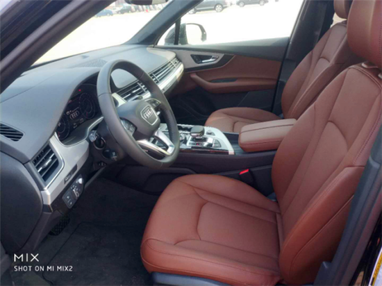 2018款奥迪Q7大功率3.0T的内饰造型是典型奥迪风格,材质高档、做工精细,真皮座椅和方向盘、深棕色木纹装饰的点缀都体现出了低调的豪华感。还有仪表 盘的水滴造型很别致,中控台的功能键排列有序,在排挡杆的周边,布置了MMI多媒体交互系统和一键式启动按钮,体现出奥迪崇尚科技的一面。