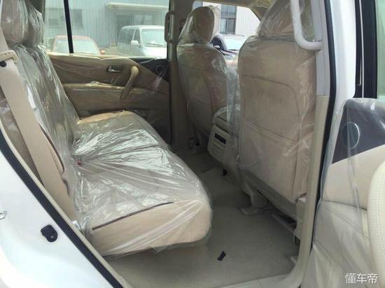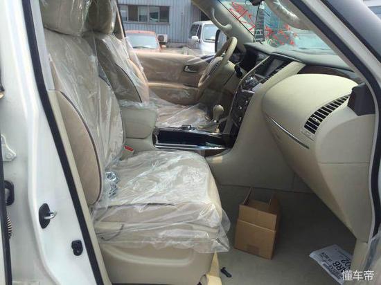 18款日产尼桑途乐为三排座车型,内饰整体风格豪华,真皮座椅、DVD娱乐、上下坡以及胎压监测等装备也都悉数出现。新款日产途乐内饰材质也更加的考究,使用了皮革,铝以及木纹样条作为点缀。