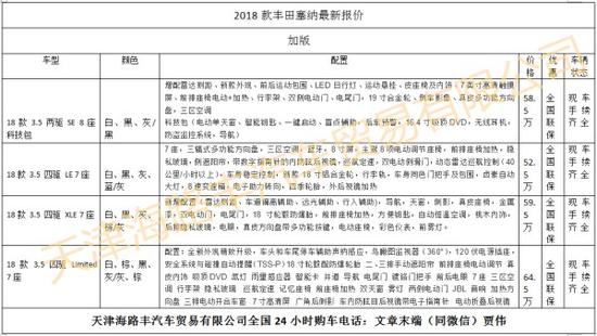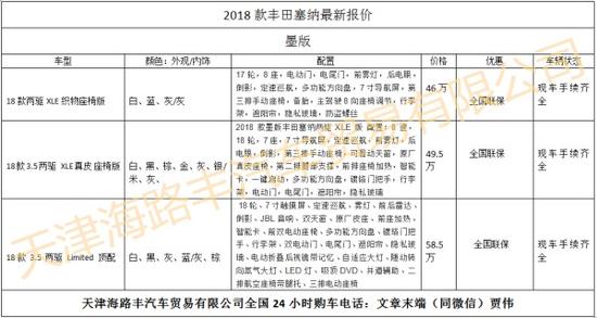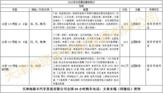 以上就是全新2018款 丰田塞纳 车型介绍,详细细节,具体价格请致电以下联系方式。