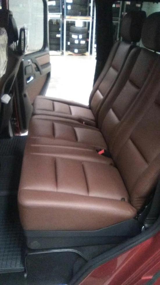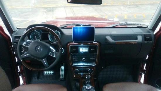 打开车门让我们看到这辆奔驰G500的驾驶室,规整大气还是和上一代差不多,内饰虽说看起来简洁规整,但是配置较为丰富,比如液晶仪表、原厂导航系统、倒车影像系统、桃木内饰、座椅加热通风记忆、自动启停系统、胎压监测、定速巡航、坡道辅助、分区空调、电动天窗、车载蓝牙、哈曼卡顿高级音响等豪华配置等。