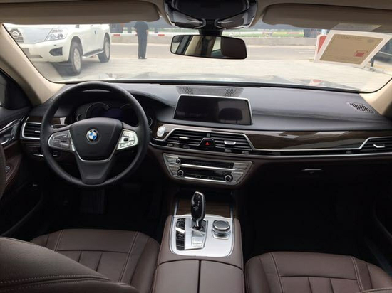 平行进口中东版宝马740采用了新的内饰风格,年轻化的运动方向盘,漂亮的液晶仪表以及分层中控台设计都说明7系在努力像时尚迈进。多色各种皮革外加深色钢琴烤漆木纹装饰板再镶嵌银色装饰条,优雅元素齐备,线条和布局都遵循了原先的设计,非常中规中矩的豪华风格。中控台向驾驶员一侧倾斜,中控台上方巨大的液晶显示屏可以通过手势进行控制。新车的方向盘也采用了新的样式,方向盘之后的仪表盘会随着驾驶模式的不同改变显示的样式及颜色。新一代7系拥有车载WIFI热点,还直接配齐了无线智能充电系统、Bowers & Wilkins音响、加入触控和手势识别的全新一代iDrive系统