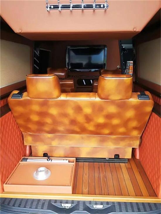 在斯宾特云锦版的贵宾舱设计了双豪华隐藏座椅,出行人多时可以打开两个隐藏座椅,不用时可以收回,变成一个时尚的吧台。除了可以欣赏3D、蓝光、DVD影片,播放CD之外,还可以通过它收看32个卫星电视频道,另外,电脑,USB等设备都可以使用这台显示器,功能不可谓不强大。