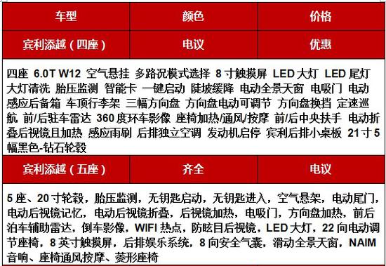 2018款宾利添越在封闭赛道测试中车速达到301km/h,超过保时捷卡宴 (配置|询价)、路虎揽胜运动版SVR以及Jeep大切诺基SRT等车型。宾利添越车尾灯的设计采用新的样式,LED尾灯点亮后呈现出宾利的“B”字母徽章样式,夜间的辨识度非常高。18款宾利添越真皮座椅的椅背及坐垫采用了大量菱形打孔处理,视觉效果很漂亮。皮质柔软,座椅填充物软硬适中,电动调节、三组记忆、加热通风以及按摩等功能一应俱全,无可挑剔。飞驰为后排乘客提供了一套名为TSR的控制器,能对后排空调、遮阳帘、娱乐系统等进行控制,这套触控设备整体用户体验还算不错。宾利逼格满满高端大气上档次。