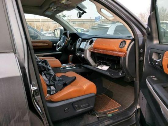 外观介绍:丰田坦途外形设计具有明显的美式风格,宽大的进气格栅几乎占据了整个车头部,与边角略微上扬的车灯组成了近似牛头的图案,镀铬中网、镀铬门把、镀珞外后视镜让这款车更具有超强的金属感,宽阔的肌肉感是豪车的典型风格,两只大灯炯炯有神的新款进口丰田坦途就这样用神态俘虏着车主。