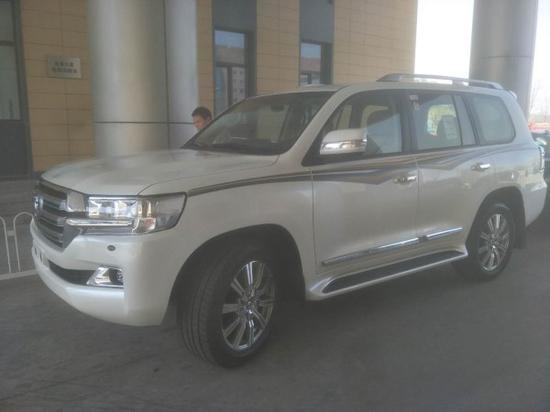18款酷路泽5700EXR,配置:无窗,金属漆,蠕行系统 12气囊,无天窗,主驾驶电动座椅,中央差速锁,丝绒座椅,桃木内饰,桃木多功能方向盘,冰箱,智能卡,一键式启动,遥控启动,巡航,CD屏,迎宾灯,后视镜倒影,自动空调,气泵,蓝牙,无电动折叠后视镜,坡道辅助,氙灯LED,285-17轮毂,脚踏,前二后四电眼,拖钩,无行李架,雾灯,底挂,灰色亮条中网,胎压监测,