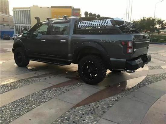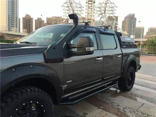 近日店内获悉:皮卡这类车型在越野圈里始终是有争议的,其实在皮卡盛行的米国,这类车始终是作为一种工具车使用,而到了中国,其高昂的售价,怎么也工具不起来,加上它魁梧的身材,强有力的动力,超高的可塑性,被国内越野玩家强烈追捧。福特F150白金精英版,在F150产品序列中已经算是比较高的配置了。新车,停在任何地方都会给人一种压力,由上至下,由内及外,由前到后。对于看惯了改装车的我来说,看着还是别扭,特别别扭!本该是辆能征战沙场的车,却加了个前杠下扰流板;本该是驰骋于荒漠的车,轮毂傻大轮胎傻小;本该是探索于无人区的车,却没有配备任何辅助照明系统。或许是我偏激了,但是我想说改装就像女人化妆,从平庸到出众只需数日的改装。