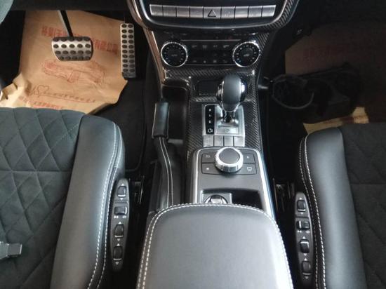 2017款奔驰G550 4x4²高性能方向盘,使用黑色Nappa真皮包裹,手感出色,集成了多个常用的多功能按键,同时具有换挡拨片。座椅具有多向电动调节、座椅记忆、座椅加热等功能。新车提供多种颜色搭配,提供designo黑色钢琴漆饰件,也可以选装designo香槟白色钢琴漆饰件。新车搭载的全新的COMAND NTG 5信息娱乐系统包含了具有特别附加越野功能的导航系统、LINGUATRONIC多媒体语音控制系统等功能。