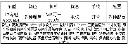 据了解该公司是一家专业从事平行进口汽车批发零售及装饰的车辆销售公司。他是作为武汉名车汇集团在天津的分支机构,注册资金2000万元整,展厅面积1500余平方米。目前公司主营车型为丰田。路虎。宝马。奔驰。奥迪。宾利等多种车型。公司的业务涵盖海外车辆订购,个性话改装,售后服务。公司的宗旨是始终坚持“创造经典 止于至善“的经营服务理念,着力打造极具人性化的专业服务项目,为广大用户提供销售。装饰等全方位的服务。下面我们具体了解一下这款2017款奔驰G550 4x4²。具体优惠价格请咨询新闻底部商家电话及微信。