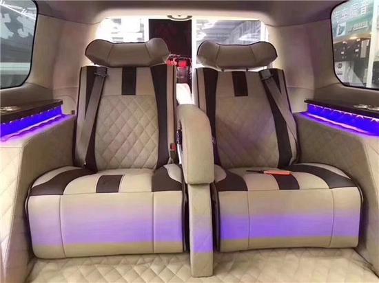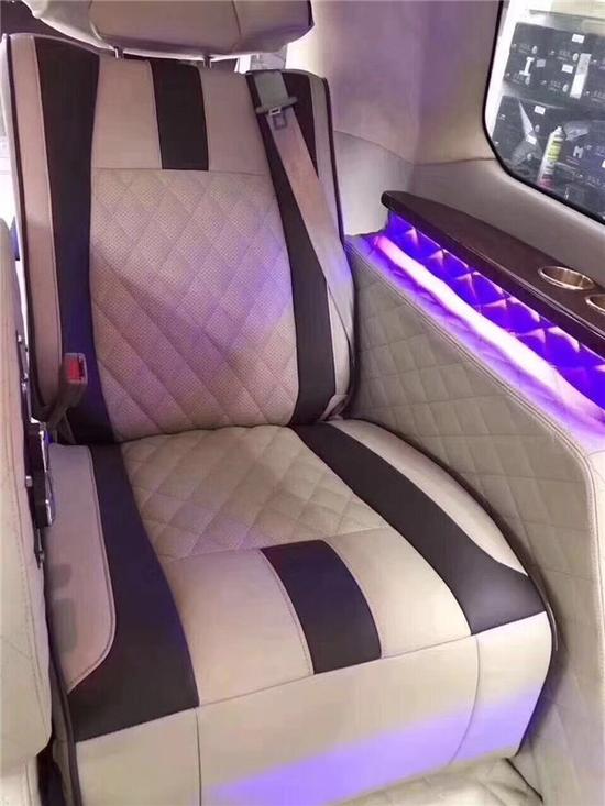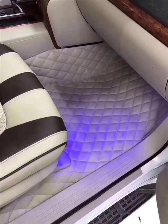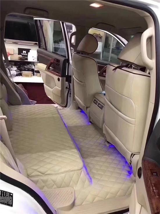 18款中东版丰田酷路泽4000航空座椅改完后视觉感受十分奢华,蓝色氛围灯更添神秘感,宽大厚实的座椅提供了良好的乘坐舒适性。