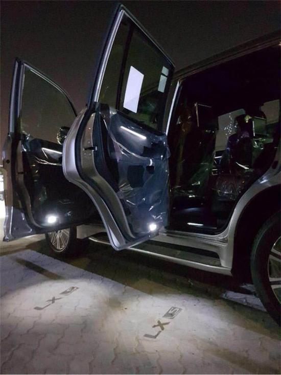 18款中东雷克萨斯限量款配置:金属漆 ,黑色前中网 ,前后大包围, 射灯, 熏黑21轮 ,遥控启动, 车身防擦条, 流水式转向灯,外置拖钩,带运动底盘,运动模式,换挡拨片,冰箱,天窗,智能卡,电眼,环影,后娱,底盘升降,前座椅通风加热(真皮),导航,桃木多功能方向盘,桃木内饰,铝制行李架,航空照明脚踏,LED, 氙灯 ,大灯清洗,迎宾灯,四区空调,三排电动,电尾门,拖车钩,ACC自适应巡航,雷达测距,后座椅通风,车道保持,二排遮阳帘,抬显,马克莱文森音响。