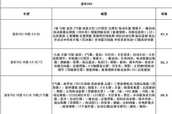 目前公司 途乐Y62 XE ,SE T2,白黑 现车充足 欢迎订购! 目前在售的 销量比较好的还是XE SE T2  配置如下