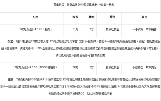 整车进口,原装品质越野的王者18款尼桑途乐4.0SE中东版精彩假期欢乐购,2018款中东版尼桑途乐4.0报价,天津口岸现车直 出售国内,车辆手续齐备,色彩齐备,配置齐备,自家外洋接车回绝中心加价,我公司是集新车出售、新车晋级加装为一体的正规公司。相识更多有关车辆题目、配置、价格、图片、分期可添加我微信或致电。电话微信请看尾部。我公司全部员工等候您的到临。{关注底部联系方式可加微信}