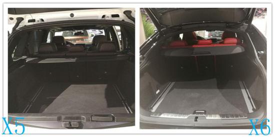 将座椅扶手置于垂直位置后,BMW X5 X6中的行李厢可提供580升的储物空间。根据需要,靠背三个部分可按照40:20:40的比例进行折叠,从而扩大可用空间。所有三个部分折叠后,行李空间可达1,525升,令人印象深刻。