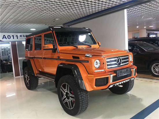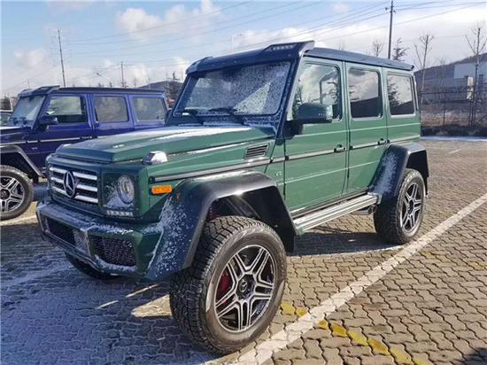18款奔驰G5004X4配置报价 最新优惠信息,现车报价36? 17款奔驰G5004x4配置:单天窗、22轮、红卡钳、双减震、氙灯LED日行灯、多轮廓电动包裹座椅、翻毛皮内饰(翻毛皮双色座椅、翻毛皮方向盘、翻毛皮门板、翻毛皮内顶)、前排座椅通风加热、二排座椅加热、哈曼音响(14个扬声器)、三把差速锁、中控碳纤维装饰、底盘舒适度调节、脚踏、前电眼、倒影、导航、多功能方向盘(蓝牙、定速巡航、换挡拨片)、双区空调。纯进口奔驰G500 4x4持了朴实无华的复古风格,在经典中穿插现代。但设计更为突出的前保险杠、全新的侧后视镜和轮毂造型,让其显得更加动感和具备攻击性。增添时下流行的LED日间行车灯设计,而尾部基本无变化,保留了其一贯硬朗的设计风格。