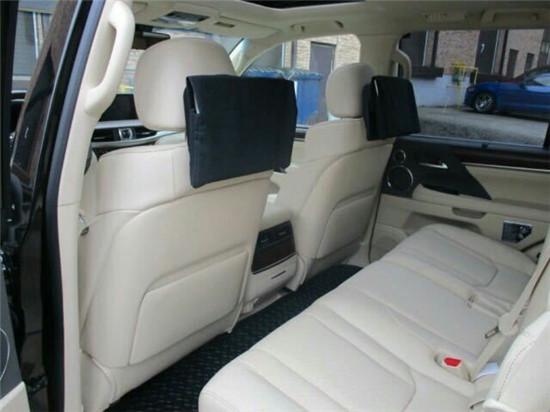 18款雷克萨斯LX570后排座椅同样采用半苯胺皮革包裹,座椅的设计较为平坦,不过却宽大舒适,并且支持电动调节前后。后排中央扶手填充厚实,手感也极为舒适,后排分区独立空调控制按键位于扶手前端,也便于操作。后方的盖板打开后可看到多媒体遥控器,可对前排座椅后方的11.6英寸显示屏进行控制,营造出一个豪华舒适的空间。