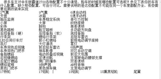 那么霸道2700该如何选?先从主要配置选起,选哪一项依据你自己的理解和喜好,有句话说“存在就是合理的”既然有可选择机会,选那个好就是仁者见仁智者见智了,优缺点都是别人总结出来的。最终的决定权还是在你自己手里。