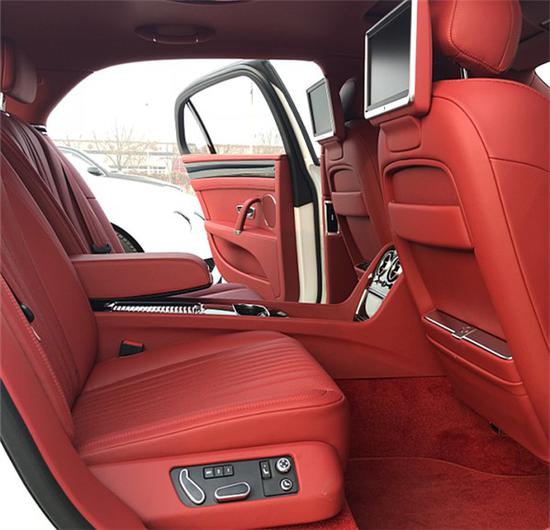 2018款宾利飞驰V8S后排空间足够阔绰,座椅的角度可以调节,但不能实现平躺,坐进去后奢华氛围让您整个人都在“发光”,真皮座椅非常宽大,内部填充多层泡沫,保证柔软的触感,包裹座椅的真皮都是由工匠手工缝制,表面也经过打工处理。