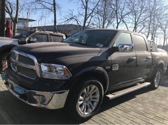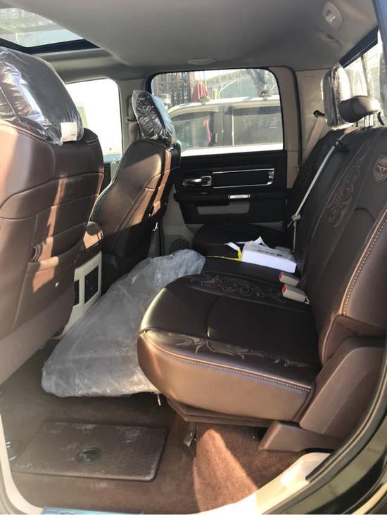 17款道奇公羊1500长角号配置:黑/棕(黑色金属漆)5.7L V8发动机、8速变速箱、电子旋转档、底盘升降、空气悬挂、智能卡一键启动、远程遥控启动、前后雷达、倒车影像、8.4寸中控显示屏、前后座椅加热、前排座椅通风、多功能桃木加热方向盘、定速巡航、蓝牙连接、速敏感应雨刷、20寸长角号纪念轮毂、前后拖钩、棕色小牛皮刺绣座椅、原厂CD、后排储物箱、简易床、电动天窗、电动后车窗玻璃。