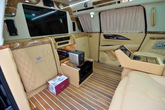 新车采用夸张的外观设计风格,令人过目难忘,犀利的设计彰显了凯迪拉克家族的自信与尊贵,车门面板做功考究,线条优美,金属材质的门把手完美地融入了面板的线条之中,配置了独有的前保险杠、格栅、LED头灯等,采用限量版22寸电镀轮圈,反映了它的稀有和尊贵。凯雷德总统一号的内饰及设计细节更加舒适更加方便商务休闲,不愧为总裁移动办公室的称谓。