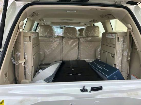 18款酷路泽 5700VXR 限量版:熏黑前大灯,限量纯白前中网,限量棱形米格Nappa真皮座椅,前后新款大包围,360度环车影像,倒车影像,电动尾门,尾部限量标,18轮,蠕行模式,天窗,远程遥启,LED氙灯,冰箱,8速,超大油箱138L,9寸屏幕导航,全地形全时四驱,四区自动空调,桃木内饰,多功能方向盘,一键启动,无线门锁,智能卡,中控锁,自动感应雨刷,大灯清洗装置,防炫目内后视镜,侧脚踏,前、后雾灯,地板照明系统,车辆稳定性控制系统(VSC), 盲点监测(BSD),转弯辅助功能,泊车辅助,上坡辅助(HAC), 胎压监测,巡航定速,后尾翼,行李架,拖钩。