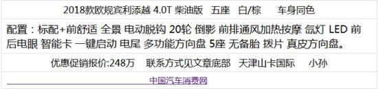 优惠促销,平行进口,18款欧规宾利添越 (配置|询价)4.0T柴油版,最新看,添越SUV18款柴油版,4.0T排量。435马力,v8。8档手自体一体。车的长宽高是5140。 1998 。1742。。五门五座SUV。。整备质量2511kg。油箱容积是85L。行李箱容积是484L。进气形式双涡轮增压。配气结构DOHC。最大功率(kw)320。。最大功率转速 (rpm)3750。。最大扭矩(N.m)900。。最大扭矩(rpm)1000。。驱动方式前置四驱。这款高档豪车宾利添越SUV。平民价格高贵享受。