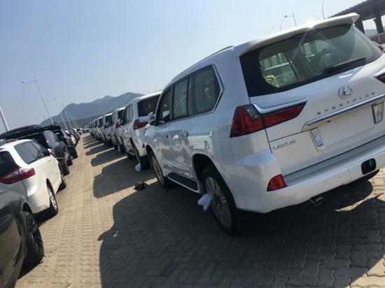 2018款雷克萨斯LX (配置|询价)570现车在售,现我公司现车充足,颜色可选,当日提车,当日上路。全国最低价开售,机不可失欲购从速。购车可优惠万元。近日提车更有豪礼相送,配置,颜色,手续齐全,国外发车,一手之源,没有中间商,把更多利润优先给全国客户,外地客户可报销机票,欲购从速,机不可失,期待与每一位新老客户的合作。质量是我们的保证,您的满意是我们永恒的追求。全国可分期。天津港新车,2018款雷克萨斯LX570。前脸造型变化最大,家族式纺锤形被进一步拉大,并且格栅周围的镀铬装饰也随之强化。