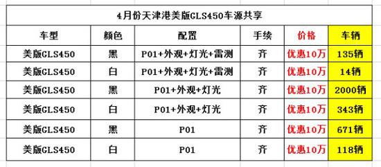 平行进口的奔驰GLS450一直是港内畅销车型,甚至导致4S店销量大减 主要的原因就是因为配置以及价格!据悉天津港5.1举行大型的团购活动 推出前十0利润促销具体如下~!