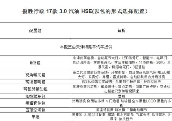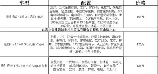 今天为大家打来路虎揽胜 (配置|询价)3.0 汽油的各个版本平行进口的对比 以及配置的详解
