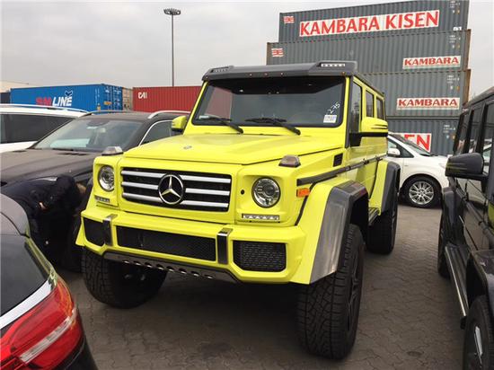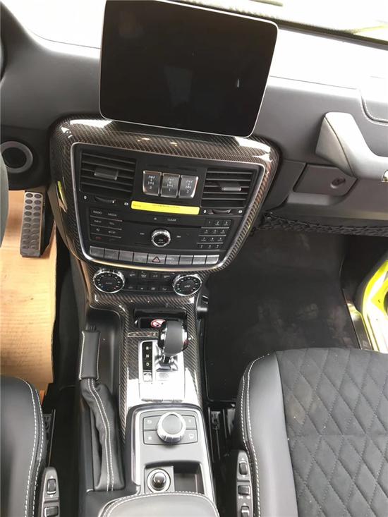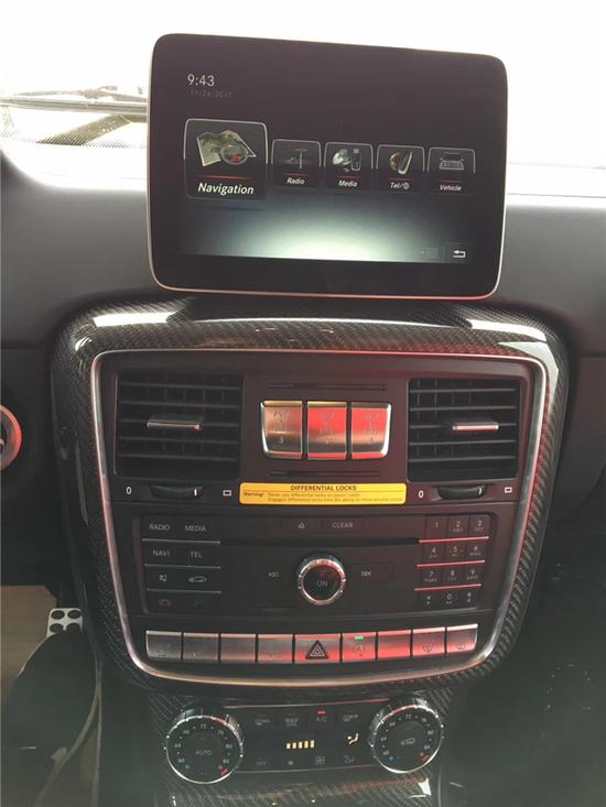 强劲的楔形特征以及醒目的奔驰车标使其在静止不动的时候都能让人感受到他的奔放气息。电动遥控踏板会自动伸出,否则以G550 4x4²达2300毫米的车高,上车就是一件苦力活。该辆G550 4x4²维持了黑色真皮重新包覆中控台、座椅及门板。