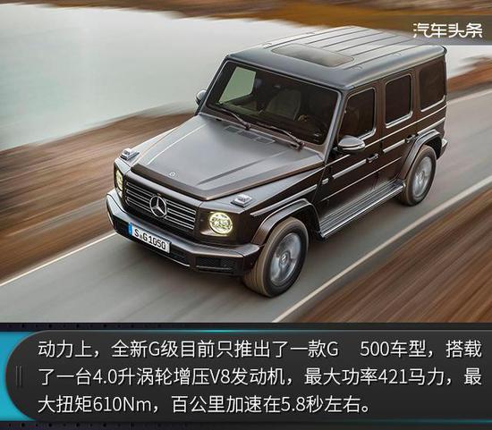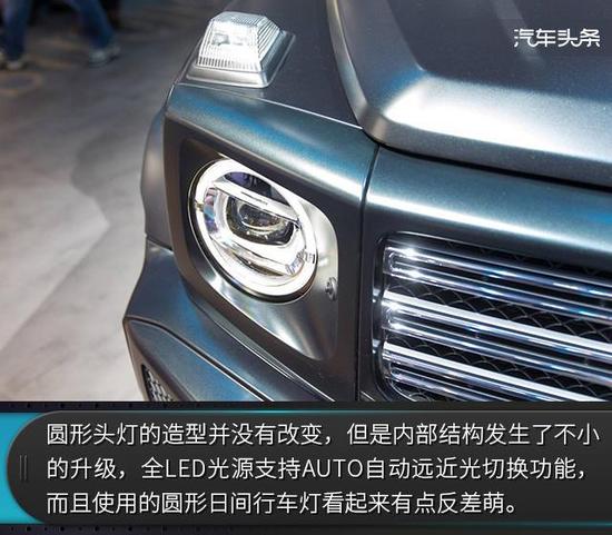 外观方面,全新一代G级保留了经典造型设计,依旧是方方正正的样子,不仔细看和现款的区别还真不是太大,最主要的变化就是只前脸做出了调整。全新的LED大灯和LED尾灯让其更加时尚,前进气格栅采用三横幅镂空式设计,前保险杠造型也进行了调整,比现款车型更加时尚与运动。
