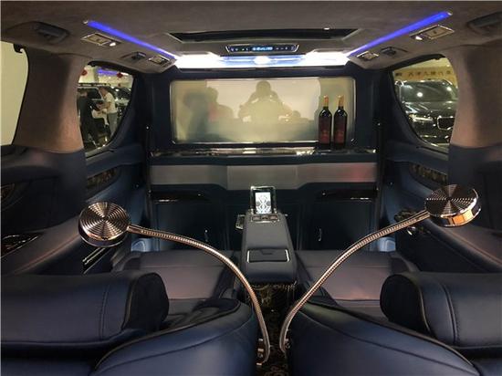 配置:● 一键式电动升降雾化隔屏☆ 电 控● 多功能方向盘+GPS全球卫星导航系统+倒车影像● 电动中滑门● 车载触控屏中控系统(人机交换系统)☆ 外 观● 全车日本进口蒙娜丽莎立体大包围(双排大灯设计)☆ 电 器● 220v电源接口、USB多功能连接口● 一键式超静音高清液晶升降电视● LED氛围灯● 德国原装进口内置集成调光器阅读灯● 智能隐藏储物柜● 智能隐藏式现代化奢华酒柜☆ 座 椅● 埃尔法原装进口一键式电动折叠航空首长席(加热、通风、气动按摩)☆ 选 材● 顶棚采用意大利阿尔坎塔拉A l c a n t a r a麂皮绒● 全车内饰选用意大利DINI真皮包覆● 进口酸枝科技木和金丝楠木拼接铝木地板● 豪华手动伸缩隐藏航空镁铝合金小桌板● 四季实用透明环保地膜。