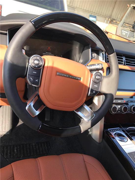 2017款路虎揽胜行政版3.0T兼顾豪华与性能,新揽胜做到了。方正规整的中控设计所制造出的氛围都是沉稳、富有安全感。方向盘也非常的现代,实木与真皮的材质,也让奢华感升温不少,上面有音响,蓝牙的控制区和自适应巡航,方向盘加热控制区,操作非常方便。内饰均采用精心设计及精湛工艺,并选用最为顶级的皮革及材质,仪表板、手套箱盖、中央通风口四周、车门内饰板和方向盘后均采用全真皮包裹,甚至驾驶者的膝部气囊的外层也同样采用了真皮装饰。