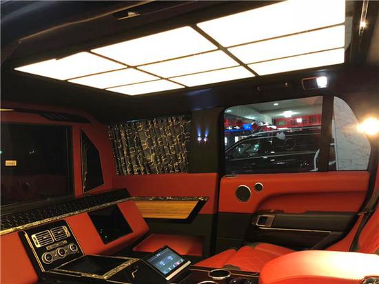 路虎揽胜皇家一号舱内的皮质面料与包边打造出极其典雅、精致的内饰细节看起来明显更为豪华,原有的中控台只保留了少数几个按钮及操作旋钮。车内后备箱容量超大能够满足出行的需求,其杰出的内饰设计。宽敞、透气的客舱展现了传统的工艺、宜人的美学效果以及对高档材料的杰出运用。而选配的后排双座行政座椅则带来更为至臻的乘坐享受。舱内选用了高级菱形爱马仕真皮打造。