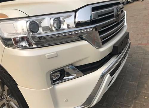 车身侧面,镀铬防挂条的设计让整车看上去更加的现代,也让整车看上去更加的修长。原装的踏板,宽窄合适,上下车方便,毕竟这个大块头太高了,没有踏板还真的不行,之所以装配的是固定踏板,原因并不是因为节省成本,而是大多数选择酷路泽可能在闲暇时,开着他去越野,电动折叠踏板收缩到车底会影响整车的离间隙,而固定踏板却不会。这也是为了越野爱好者们所设计也是非常的合理