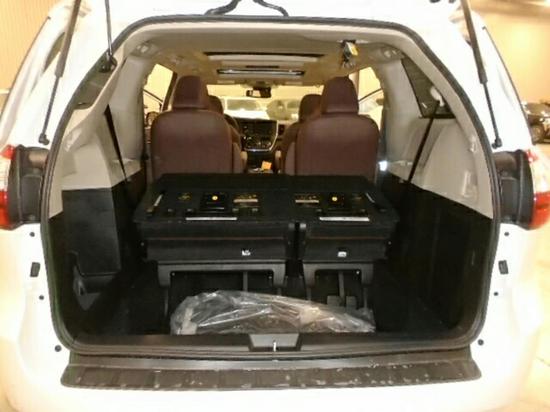 内饰方面:18款丰田塞纳3.5四驱 7座操控区域将大部分控制按钮收纳其中,便于操作。整体很豪华精致,这也是丰田多年来的设计坚持!而且造型很有科技感。座椅可在轨道上前后推滑,使得驾乘人员的舒适性和载物最大化。丰田塞纳奢华内饰超级改装,航空座椅改装新车卓而不凡的品质、坚实可靠的性能,再次诠释了丰田家族的风采。