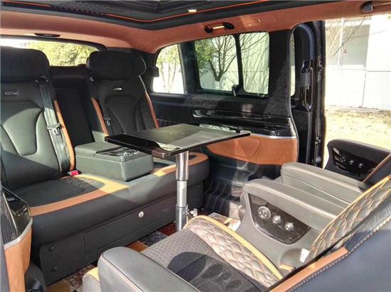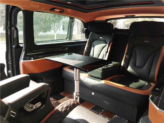 一款豪华车该有的素养,在这台奔驰房车上体现得淋漓尽致,一体式高光桃木弧面切割,双层纳帕真皮包覆的三幅式方向盘,以及扶手箱处贴心的恒温水杯、车载冰箱配备,为你的商务行程助力。
