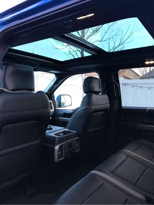 18款福特F150白金版内饰采用独特的中控台和门饰板面漆和真皮包裹的方向盘。中控台部分辅以银色饰板装饰,六指针仪表盘的设计有些后工业时代的复古风格。采用带电冷热功能的可记忆式皮革座椅,头枕四向可调,搭配铝饰条和黑色钢琴烤漆内饰。可电动升降的后窗带隔板和电热除霜功能。进口18款福特F150皮卡真皮座椅包裹性很强,无论是越野还是长途旅行,都很舒服,丝毫不感觉到这大家伙的压抑,二排空间也是十分宽敞,乘坐四个身材高大的乘客绝对没问题。座椅折叠起来可以放一个冰箱,而且门上储物格空间也是够用,虽然不像公羊后排那么豪华,有简易床,但是这种实用的理念就是福特的宗旨。