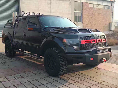 18款福特猛禽在完美的诠释美式肌肉感的同时让他看起来更像一位强横的斗士。气质就是强悍,超大的尺寸,简约的线条勾勒出大而气派的感觉。还有一个野性十足的地方是发动机舱盖上的两个散热口,和进气格栅也是同样颜色。福特F150血统纯正,拥有了无与伦比的车身刚度,整体车身肌肉感十足,威慑力表现的淋漓尽致。巨大的长方体蜂窝式格栅中间镶嵌着福特的大标,再加上全新设计的保险杠和发动机舱盖,使车头拥有了震撼的冲击感。车头给人一种很凌厉的气势,简约的线条勾勒出大而气派的感觉。