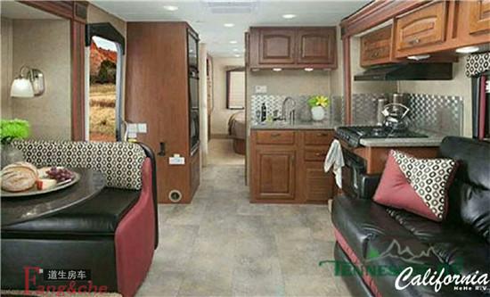26寸LCD液晶电视,一组便捷的折叠餐桌,顶部安装中央恒温空调和极度豪华的灯光组合给人予梦幻星空般的视觉感受。接下来是厨房,精美的家庭式橱柜、炉具,微波炉、冰箱、烤箱、洗涤槽构成现代化厨房。然后是独立1.5平方米的淋浴和卫生间,采用航空式抽水马桶、冷热水一体化装置,精华忙忙碌碌之后,可以在这里消除您一天的疲惫; 最后是卧室,卧室配备换气风扇保障空气清新,配备外展式移动双人床、床头灯、床头柜、大衣柜和梳妆台组成了一个豪华卧室;19英寸平板电视,13.5BUT车顶空调,宽大的双人床,舒适温馨,舒适灯光设计既节能又美观,给人以家的温馨,整面的镜子显得卧室宽大了一倍,在视觉上更加舒服。