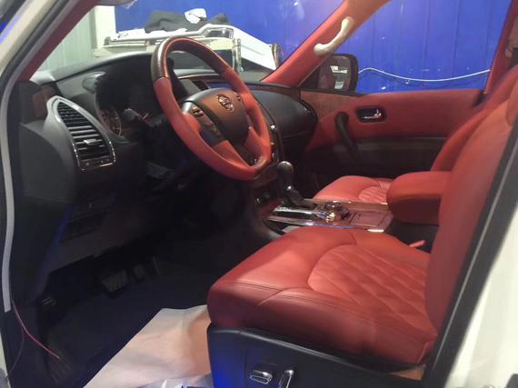 内饰方面:18款日产尼桑途乐Y62XE4.0L采用了豪华轿车惯用的四幅风向盘设计,粗细比较合手再加上真皮加实木 的用料,手握感觉极佳。另外方向盘功能强大,集成了音响、空调控制及蓝牙车载免提系统,使驾驶者在行车中更为安全,做到手不离方向盘。同时方向盘加热功能,令驾驶者双手在寒冷的冬季也能得到最佳的呵护。