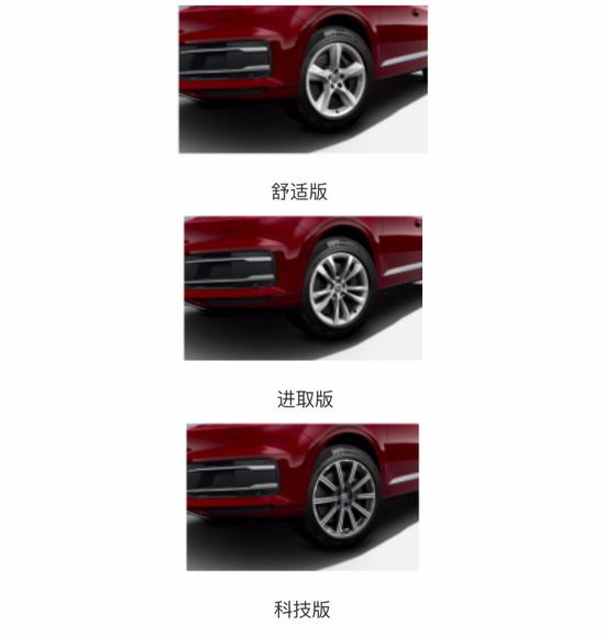 舒适版标配19寸5辐星型轮毂,进取版标配19寸5辐V型轮毂,而科技版标配20寸10辐星型轮毂