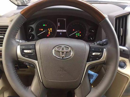 内饰方面:17款丰田酷路泽5700多功能桃木方向盘方便了驾驶员的操控,车内上深下浅的新色系搭配 ,让整个车内相比老款 车型温馨的不少。特别是桃木饰条的加入使得车内看起来更“丰田”,也提升 整车豪华氛围。丰田兰德酷路泽5700在中控台 的面板换成与内饰新色系更搭的黑色钢琴烤漆材质,真 皮座椅与桃木内饰的搭配使整个车内更显高贵。