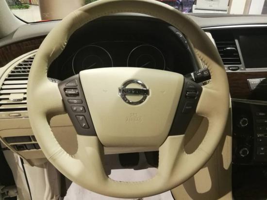 该车中控台及方向盘运用了大量的皮质包裹(包括原厂真皮座椅),在质感的营造上也较为出色。此外,这款车在换挡杆周围等区域融入了木纹装饰,这也相应提升了其内饰整体的豪华感。2018款尼桑途乐Y62采用了豪华轿车惯用的四幅风向盘设计,粗细比较合手再加上真皮加实木的用料,手握感觉极佳。另外方向盘功能强大,集成了音响、空调控制及蓝牙车载免提系统,使驾驶者在行车中更为安全,做到手不离方向盘。