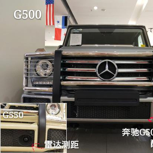 外观方面:图一可以看到G500一版没有雷达测距,就是上图的黑色小灯泡。墨版G500为单选配置,美规G550则是标配,其作用在于在高速行车时,有效保持车与车之间的距离。。