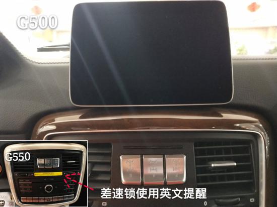 美版G550在每一台新车差速锁按键下都有一个醒目的警告!Never use differential locks on paved road,Engaged differential locks limits the ability to move around curves