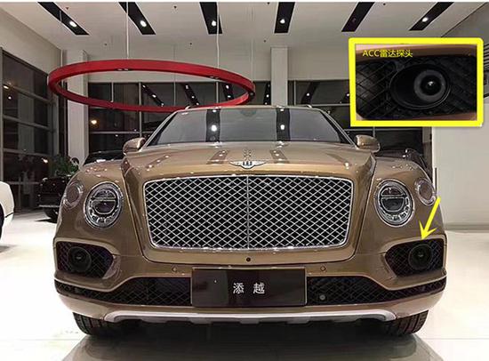 2018款宾利添越 (配置|询价)的设计充分体现了宾利传统的品牌风格和创新的生产工艺,呈现给世人的永远都是最强劲,最豪华的视觉体验。新款添越借鉴了EXP 9 F概念车的设计理念,前脸采用了品牌标志性的全LED圆灯造型,新车中网格栅、前保险杠两侧与中央格栅部分,均采用了镀铬网状设计。ACC巡航(自适应巡航)通过车头两颗雷达监测与前方车辆的距离。