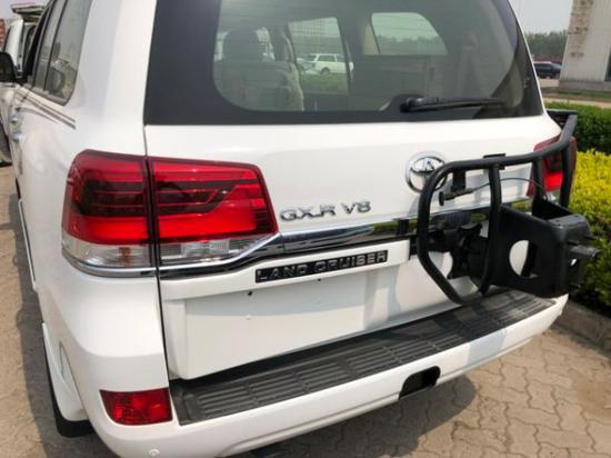 18GXR款酷路泽4600配置:7座,金属漆,蠕行系统,8气囊,主驾驶电动座椅,中央差速锁,天窗,丝绒座椅,桃木内饰,桃木多功能方向盘,冰箱,智能卡,一键式启动,遥控启动,巡航,cd屏,迎宾灯,自动空调,蓝牙,坡道辅助,氙灯LED,285-18轮毂,脚踏,前二后二电眼,6速,拖钩,银色高位行李架,雾灯,双油底挂,灰色亮条中网,胎压监测,零件箱。