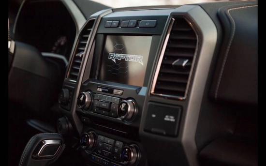 18款福特猛禽F-150皮卡3.5TT中控台8.0寸的彩色中控屏和4.2寸行车电脑屏为驾驶者提供清晰的周边情况,同时根据反馈的信息自动调整驱动程序。